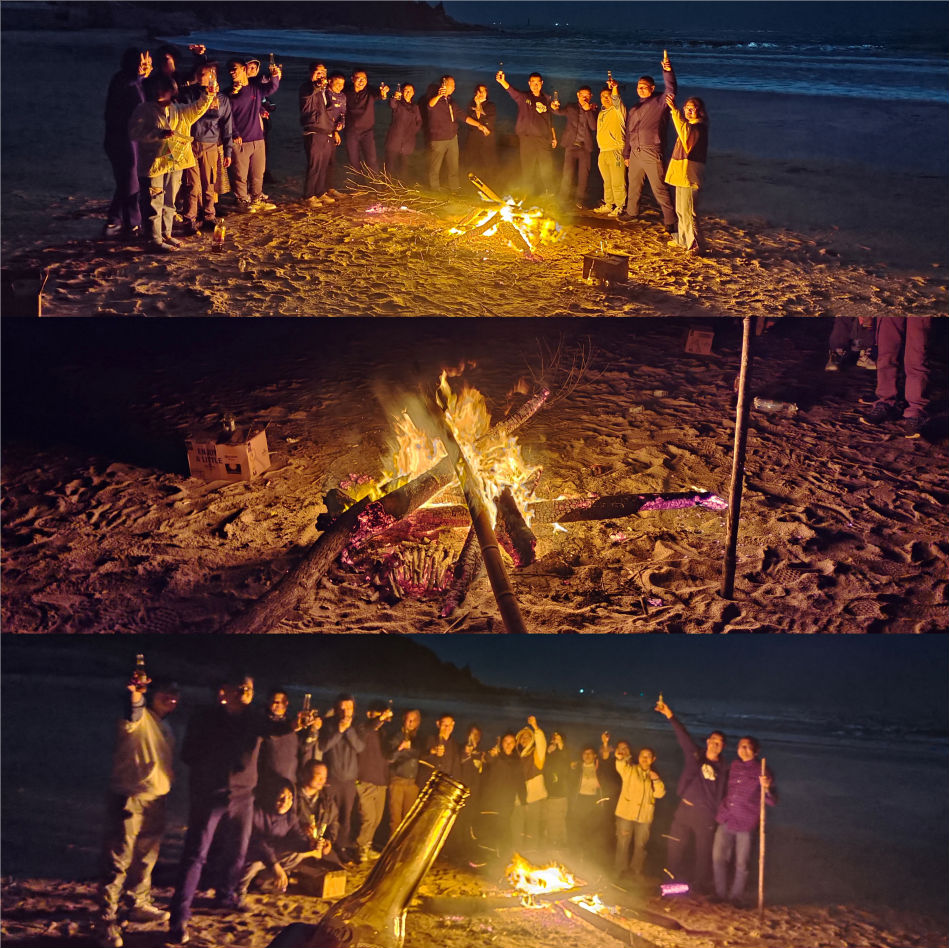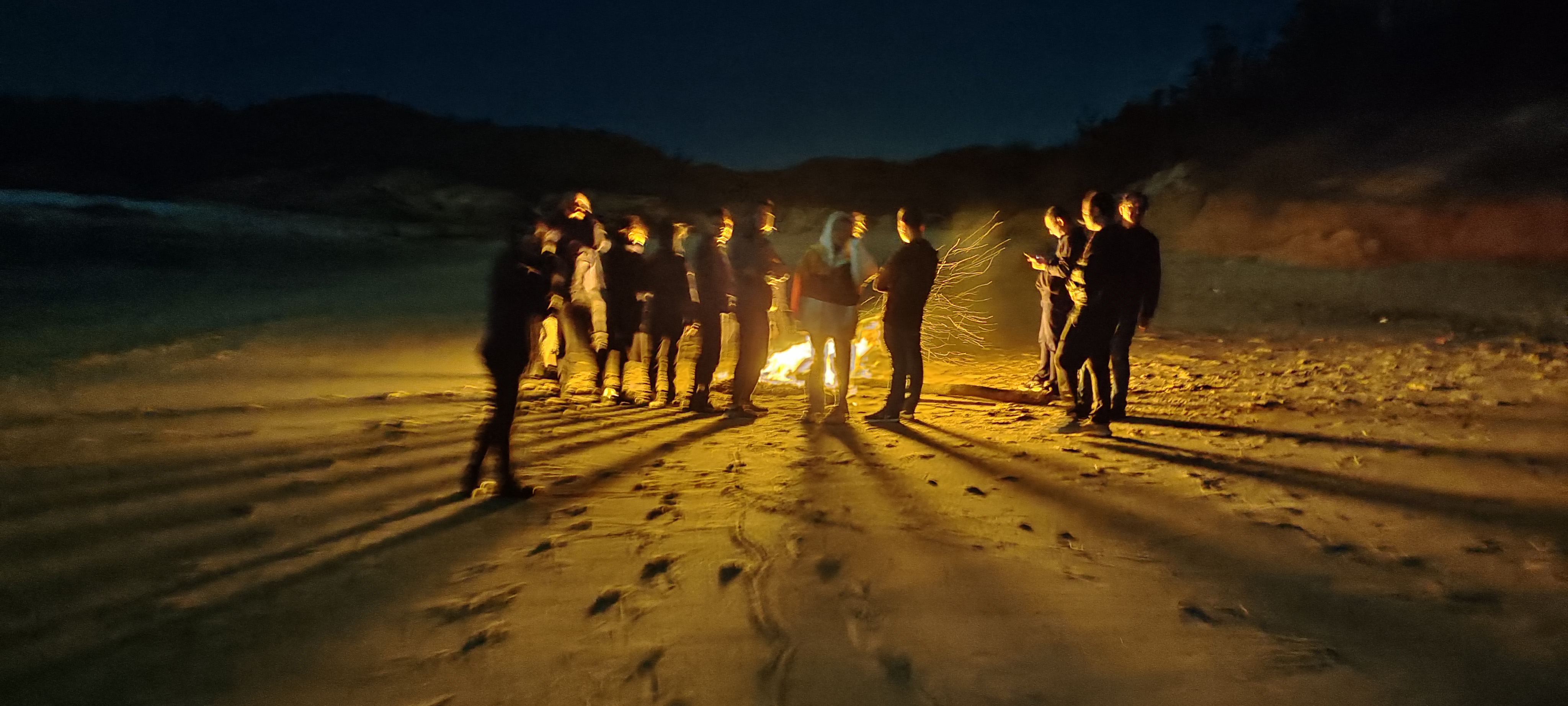 晚上我们来到浯屿后江沙滩,公司的大神自己拾柴火、樟木等,架起了篝火局,女同事们都投去了崇拜的眼神,篝火让冬日的晚风不再寒冷,大家围着篝火放着音乐聊着天吹着啤酒吃着干货,那是相当的惬意!