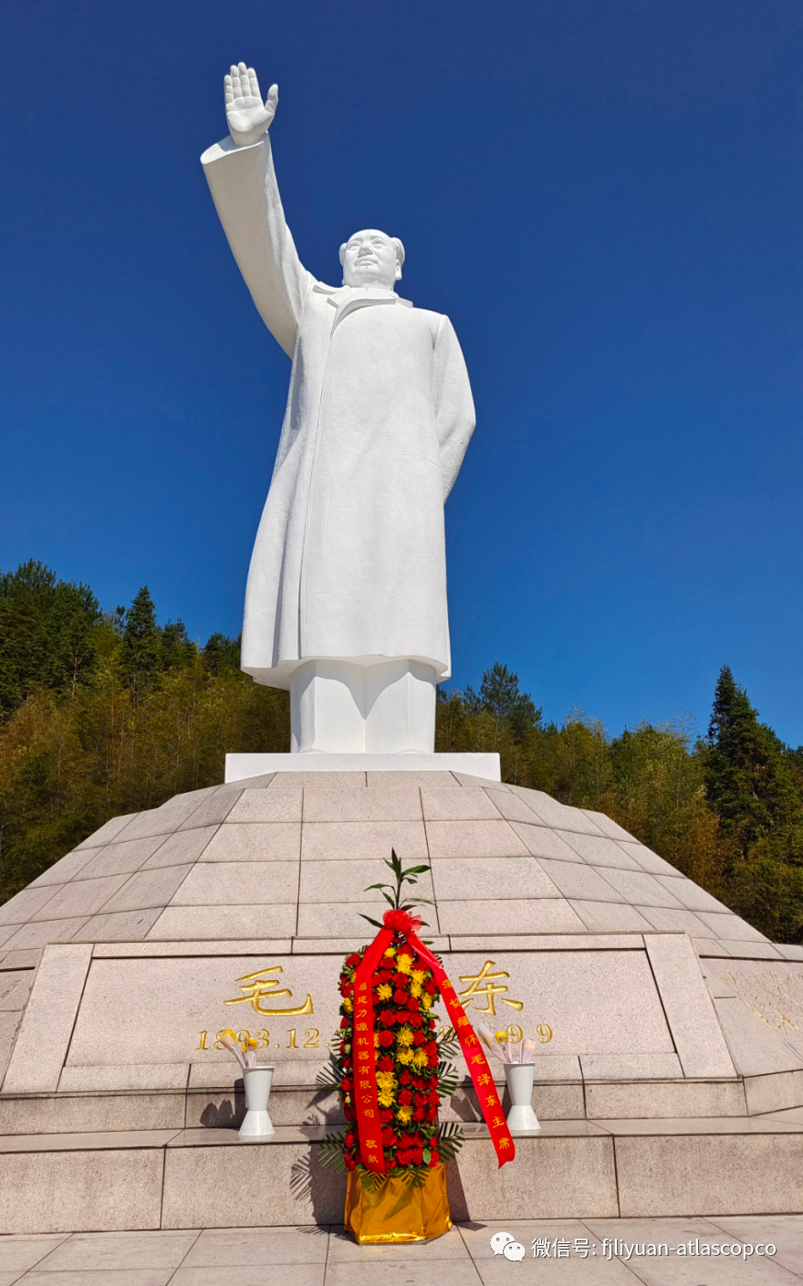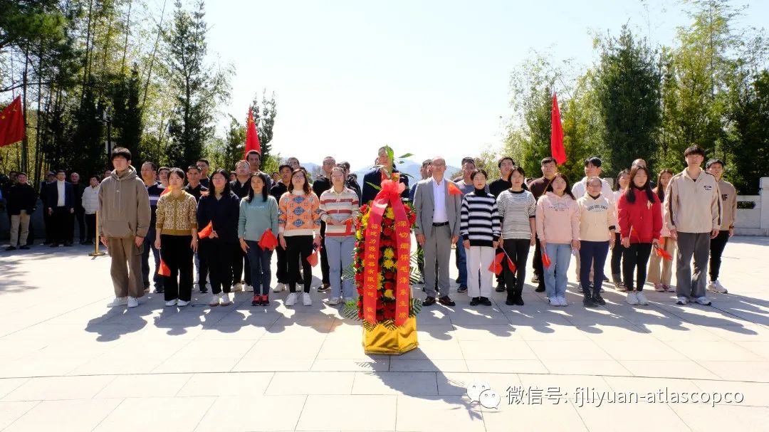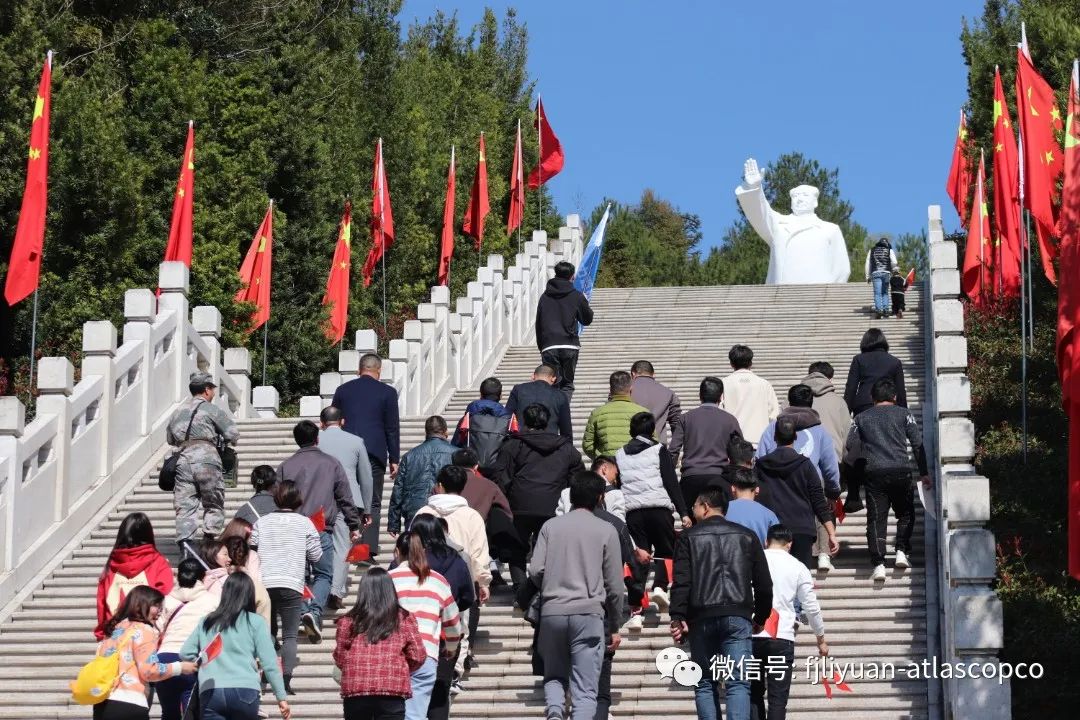 大家一同前往毛主席纪念园,沿着纪念园151级台阶拾阶而上,瞻仰毛主席雕像。